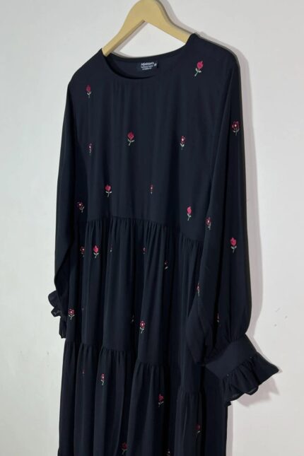Elevate your everyday modesty with our Embroidered Button Through Abaya. Featuring delicate embroidery along the front and cuffs, this abaya combines the classic button-down functionality with contemporary elegance. Crafted from premium breathable fabric, it offers a sophisticated silhouette that is perfect for both formal gatherings and chic daily wear.
